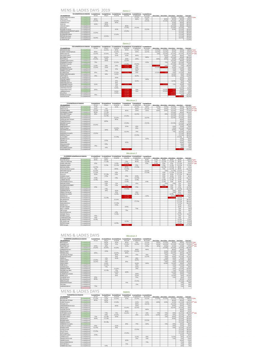 Dans chaque catégorie, seules les personnes ayant disputé minimum 4 compétitions sont éligibles pour la finale.
