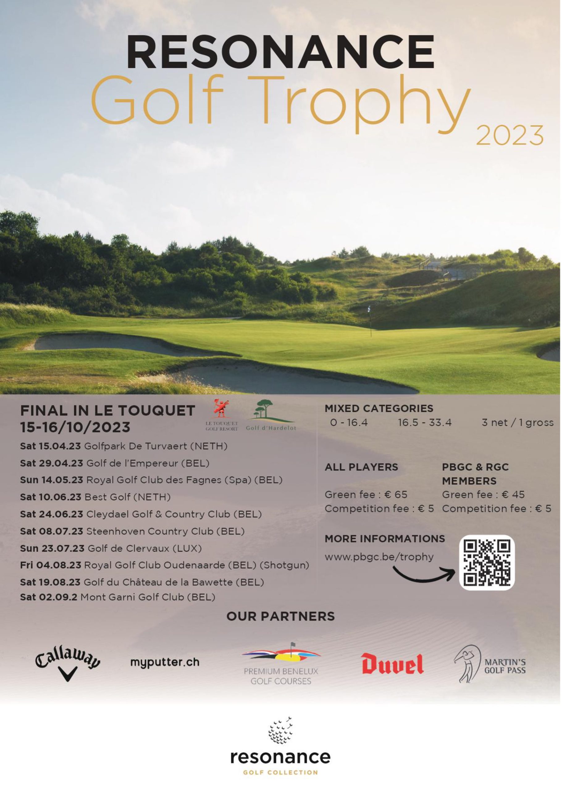Nous espérons vous voir participer nombreux aux 10 qualifications du Résonance Golf Trophy 2025 (nouvelle dénomination pour l’ancien Open Golf Club Trophy) qui amèneront directement 30 d’entre vous à la grande finale des 19 et 20 octobre au Touquet et Hardelot.