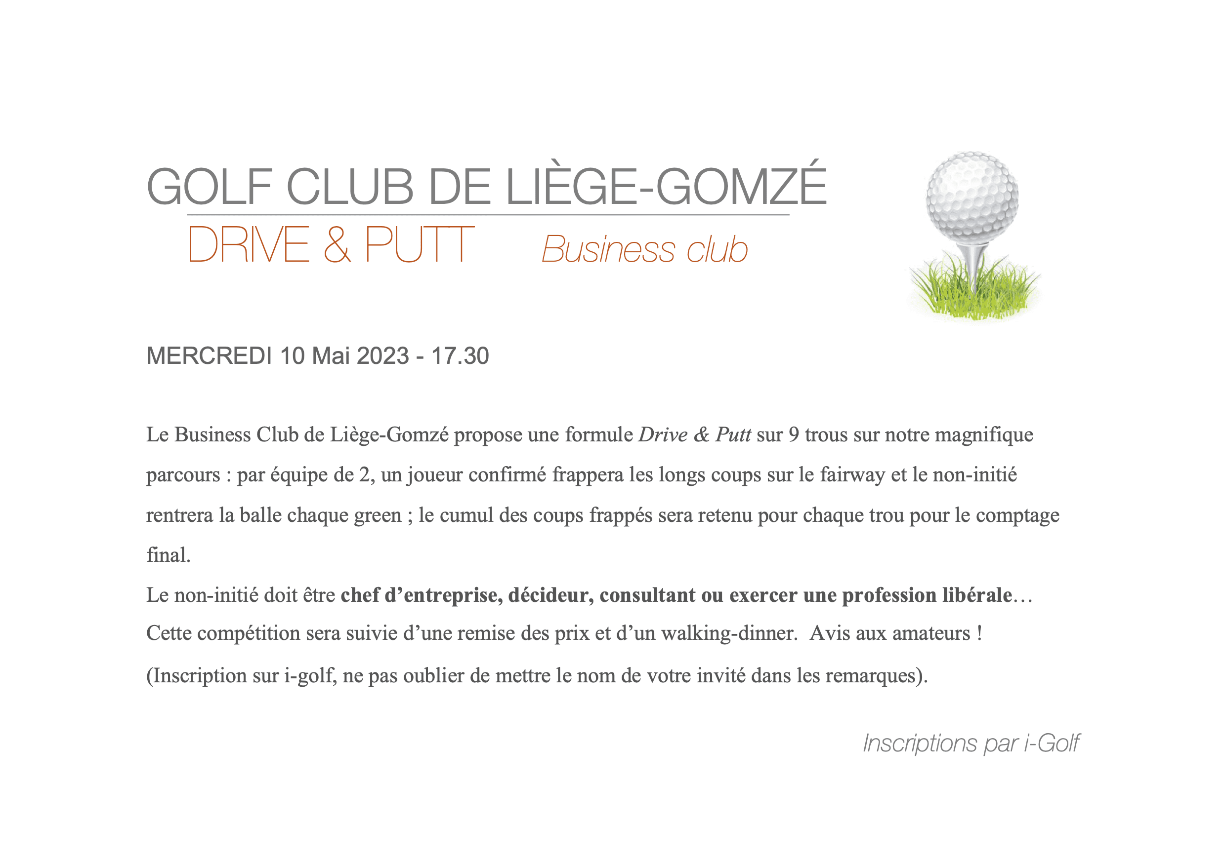 | Ve 06/09/2024 | 4ème Manche Inter Business Trophy au golf de Liège Gomzé |