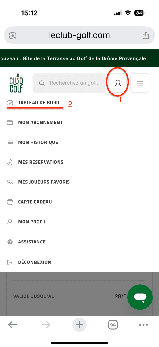 Et reconnectez-vous, allez dans « Profil » (1), ensuite Tableau de bord (2)