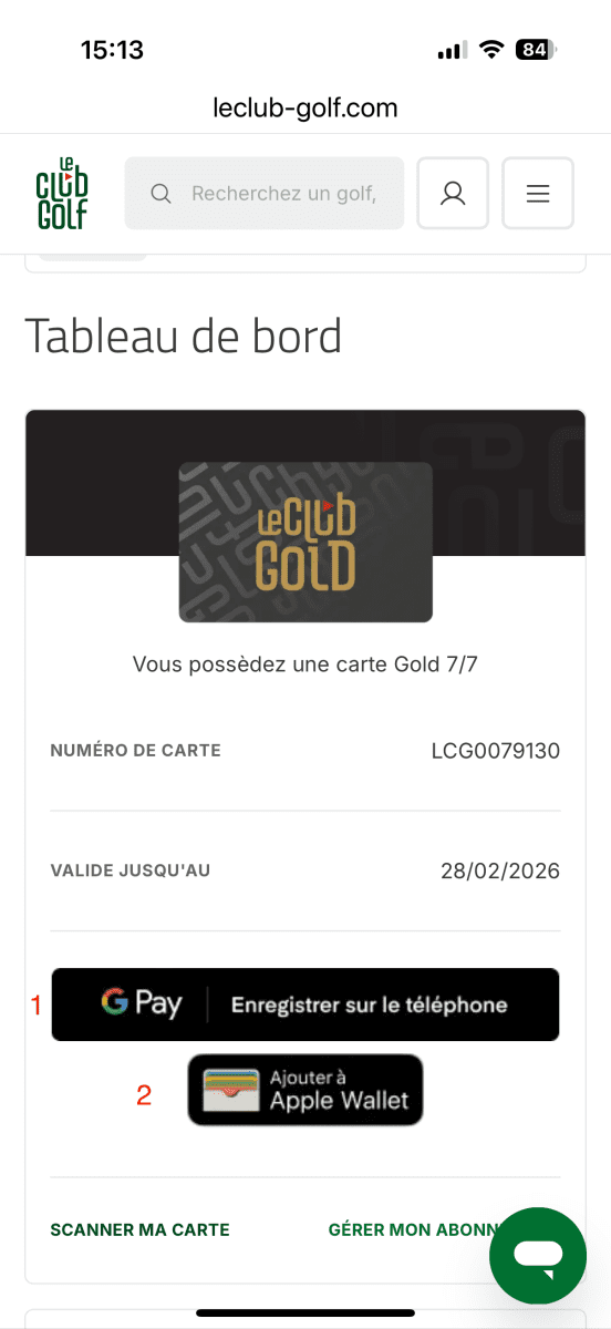Pour télécharger votre Gold Card sur votre smartphone, ouvrez la webapp sur votre navigateur, et enregistrez là sur sur votre écan d’accueil…