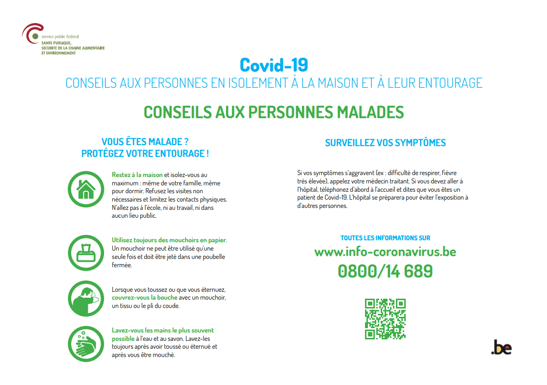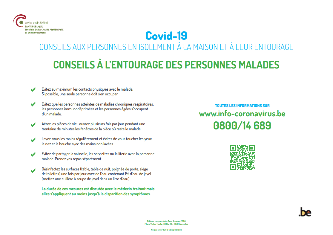 Pour rappel, si vous êtes malade ou si vous revenez d’une zone à risque, il est demandé, avec beaucoup de bon sens, de rester à votre domicile pendant 14 jours, période maximale d’incubation.