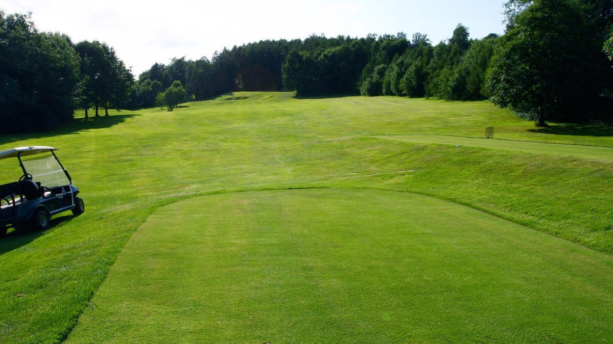 Large Par 4 de 246 mètres, en montée, out of bounds à droite, dont le green protégé par deux profonds bunkers est entouré par les bois.