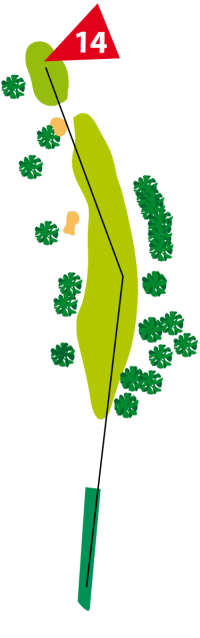 Par 4, 305 mètres, très étroit au départ des back tees, bunker de fairway blind, green profond protégé par un bunker frontal.