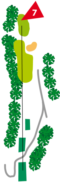 175 mètres, Par 3, au départ très étroit, buissons sur la gauche et green défendu par un grand bunker frontal. Obstacle d’eau latéral à droite du bunker. Un des plus beaux trous du parcours.